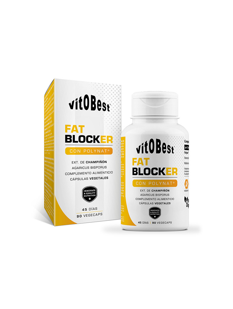 Fat Blocker, from Vitobest®, is a powerful fat blocker, which works primarily thanks to a revolutionary compound obtained from the mushroom (Agaricus bisporus): Polynat®. This plant species is a good source of fiber: 2 g per 100 grams of food. Its main component is chitin, a polymer of N-acetylglucosamine that provides a feeling of fullness, increases fecal volume and improves intestinal transit, thereby reducing fat absorption1,2.
